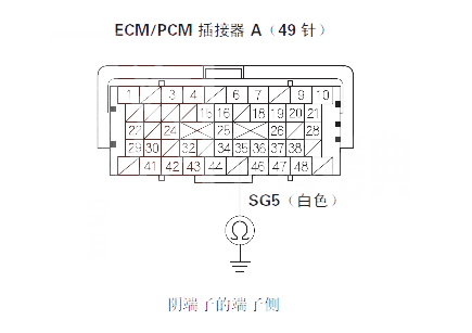 11 檢查ECM/PCM插接器端子A35 和車身搭鐵之間是否導通。