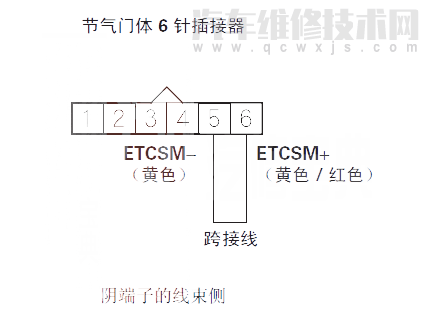 16 用跨接線連接節氣門體6針插接器5號和6號端子。