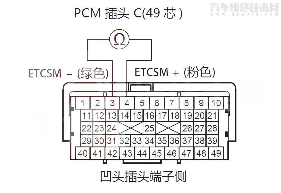 17 檢查PCM插頭端子C3與C4之間的導(dǎo)通性。