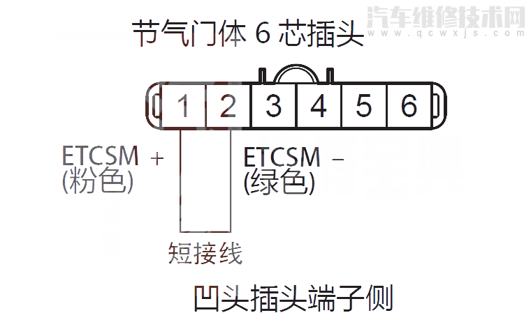16 使用短接線連接節(jié)氣門體6芯插頭1號(hào)端子與2號(hào)端子。