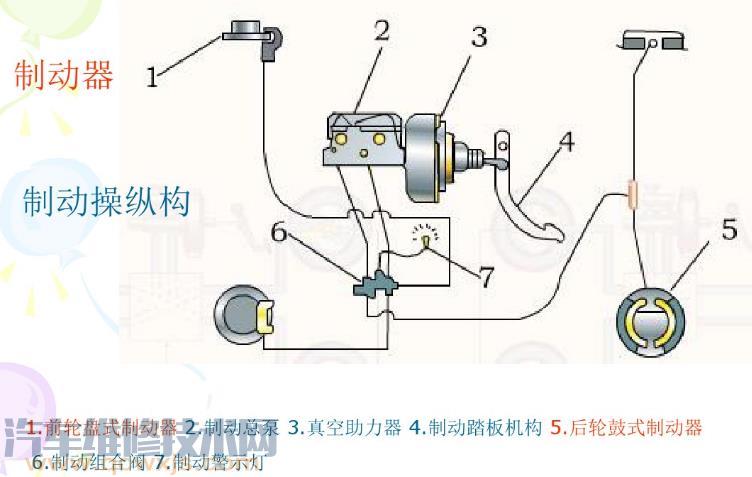 每輛汽車的制動裝備都包括若干個相互獨立的制動系統,每個制動系統都由供能裝置、控制裝置、傳動裝置和制動器組成。