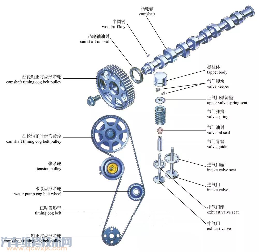 配氣機構的功用是根據發動機的工作順序和工作過程,定時開啟和關閉進氣門和排氣門,使可燃混合氣或空氣進入氣缸,并使廢氣從氣缸內排出,實現換氣過程。