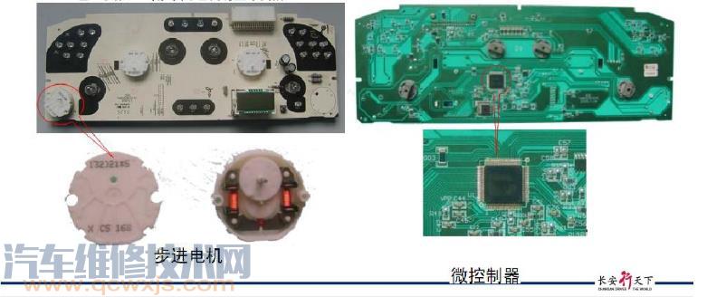 長安汽車儀表總成主要由電路板、儀表面罩、底殼組成。主體部分是電路板。電路板上安裝有指示燈、控制器、步進(jìn)電機(jī)。