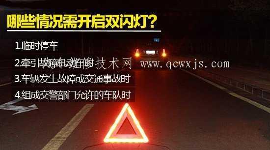 雙閃燈又叫“危險(xiǎn)警告燈”,在車輛出現(xiàn)緊急狀況時(shí)應(yīng)該通過相應(yīng)的開關(guān)開啟此燈。車輛拋錨停在路邊時(shí),除了要亮起雙閃燈還要在車輛后方200m左右的地方設(shè)立三角反光板對(duì)后面來車作出警示,避免追尾事故的發(fā)生。雙閃燈的另一個(gè)作用是標(biāo)識(shí)車隊(duì)中的車輛,讓其它車知悉車隊(duì)將通過。