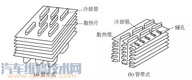 散熱器芯由許多冷卻水管和散熱片組成,采用散熱片是為了增加散熱器芯的散熱面積。散熱器芯的結(jié)構(gòu)形式有多種,常用的有管片式和管帶式兩種。