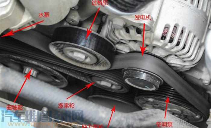 發動機的兩端分別稱為飛輪端與附件端,所有附件安置于發動機附件端,是由一到兩條皮帶將所有附件連上曲軸。因此,附件傳動帶在各種運動中扮演了一個橋梁的作用。而附件傳動帶上都會有一個張力器來調整皮帶張力,如果張力過松,通常在運轉的時候會產生尖銳的聲音,所以當有些車子在起步時,伴隨的尖銳的聲音,都是皮帶出了問題。如果附件傳動帶磨損,那么各系統無法正常工作,可能會出現打滑、異響,甚至損壞發動機,所以定期檢查和保養附件傳動帶是很有必要的。