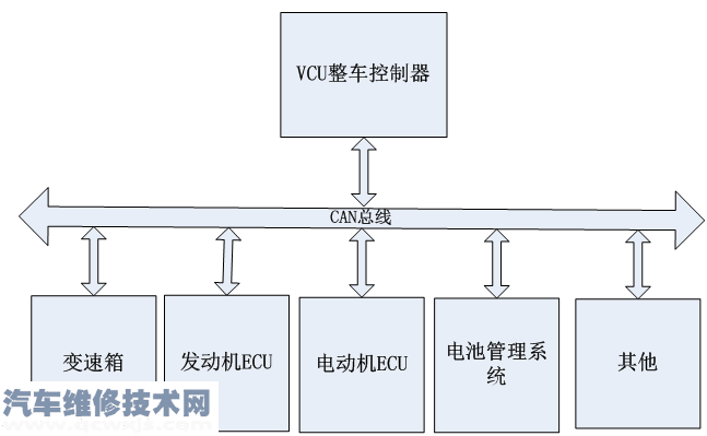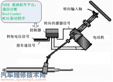 本項目所開發的EPB電子控制單元具有兩種版本,分別適用于單電機拉索式和雙電機集成卡鉗式EPB。電子控制單元采用主CPU加安全監控CPU的雙CPU方案,提高系統的可靠性。電子控制單元采集相關信號,控制電機和機械執行機構能分別實現臨時停車制動、坡道起步輔助、動態緊急制動和自動駐車(Autohold)四項功能。該電控單元適合應用于12V供電環境,可用于轎車和純電動汽車的轉向控制。主控MCU采用英飛凌的XC2300系列單片機,通過采集發動機轉速信號、車速信號、扭矩傳感器信號、點火信號等車輛狀態信息,并送入到控制器ECU進行綜合、分析、判斷和運算后輸出電流信號控制EPS電機。EPS電機通過傳動機構產生助力轉矩,該助力扭矩施加到轉向軸上,從而輔助駕駛員完成轉向操作。該系統低速時轉向控制輕便,高速時轉向助力小,操縱平穩不發飄。結構組成如下圖所示。VCU通過采集駕駛員操控信息,車輛行使信息、發動機、電機、電池、變速箱數據及各個子系統的反饋信息,經過計算向各個子系統發送控制命令,從而實現VCU對整車的控制。整車控制器的策略是在不同工況下結合電機、電池和發動機驅動汽車,使得效率最佳。處理器采用英飛凌公司32位處理器TC1728N。