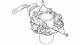 檢查(+)電刷A和(一)電刷B之間是否導通如果導通,則更換電刷架總成