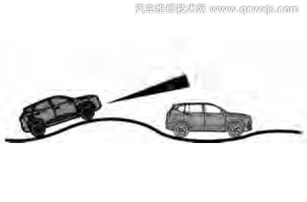 車輛進入坡道時,雷達可能無法探測到前方車輛。