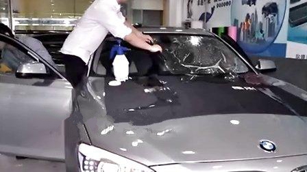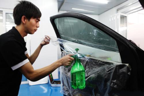 (4) 在氣泡的口上,以熱風槍向膜與玻璃之間灌飛,當泡的邊緣的貼在玻璃上時(可用手按住氣泡的兩邊),快速用熱風槍對氣泡進行加溫,并用塑料刮板快速將氣泡刮平