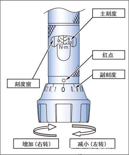 扭力扳手的柄長一般是1米,從手柄的邊緣指針對齊的刻度尺直接讀數,手柄擰到的刻度值就是設定的力矩值,力矩值是牛頓米或千克力米,刻度盤上寫有單位。調好力矩值后,接著鎖定扭矩扳手,就可以開始擰緊螺栓了。