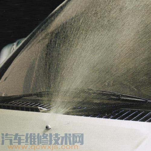 ③當清洗液噴在風窗玻璃上之后,雨刮器應能及時操作。否則,應檢查調整清洗器與雨刮器的同步工作情況進行。