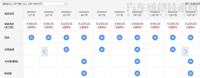 奔馳GLC200常規保養一次要多少錢?