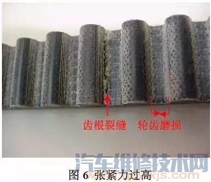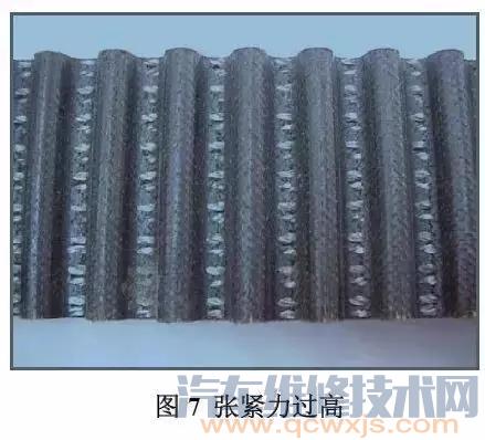 在發(fā)動(dòng)機(jī)皮帶運(yùn)轉(zhuǎn)2到3年后,當(dāng)其芯線達(dá)到疲勞壽命時(shí),皮帶損壞是屬于正常情況。在經(jīng)過長期運(yùn)轉(zhuǎn)后,皮帶由于芯線達(dá)到疲勞壽命而失效損壞,這屬于理想的皮帶失效模式。
