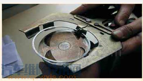在維修發動機時,必須使用活塞拆裝鉗拆裝活塞環。在使用活塞環拆裝鉗時,將拆裝鉗上的環卡卡住活塞環開口,握住手把稍稍均勻地用力,使拆裝鉗手把慢慢地收縮,環卡將活塞環徐徐地張開,使活塞環能從活塞環槽中取出或裝人。使用活塞環拆裝鉗拆裝活塞環時,用力必須均勻,以免用力過猛而導致活塞環折斷,同時可以避免傷手事故。