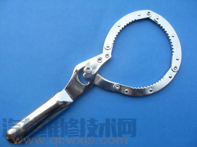 機油濾清器扳手用于拆裝機油濾清器,分帶式機油濾清器扳手、鉗式機油濾清器扳手、鏈條式機油濾清器扳手、三爪式機油濾清器扳手和帽式機油濾清器扳手等。
