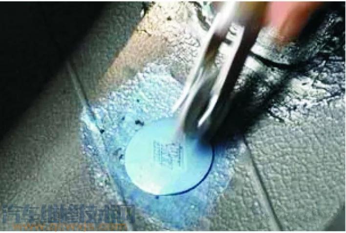 使用鉗子夾住穿出傷口外的整體塞梗部,用力拉,直至整體塞冠部緊貼輪胎內壁。再次從內側輾壓以保證貼合,然后再次涂膠,補胎完成;