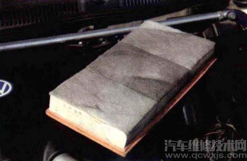打開空氣濾清器箱蓋就可以看到因使用一段時間后呈現臟污的空氣濾清器濾芯。