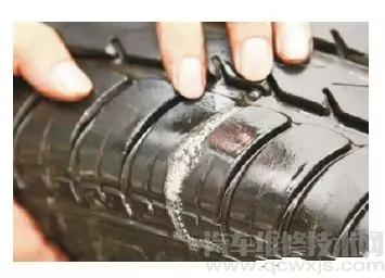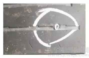 ① 進(jìn)行標(biāo)記拆下輪胎,并在被扎的部位進(jìn)行標(biāo)記。