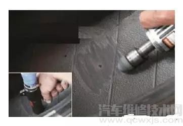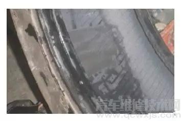 ③ 打磨吸塵 將輪胎內(nèi)壁被扎的部分進(jìn)行打磨吸塵。注意:在打磨的時(shí)候不要損壞輪胎的簾布層。