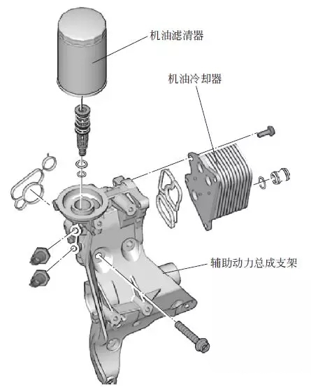 下圖為EA888第三代發(fā)動機機油濾清器裝配圖。由于采用了渦輪增壓,發(fā)動機整體溫度較高,因此采用了