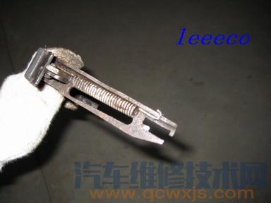 15——后輪制動蹄上回位彈簧。彈性系數比彈簧13大,當制動間隙正常時,15不被拉開;制動間隙過大時,13先張開,15后張開。