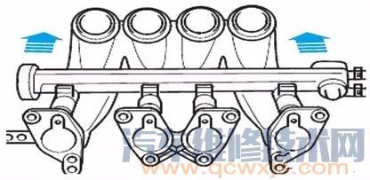 ③ 將燃油分配器與噴油閥插到進氣歧管上并均勻壓入。