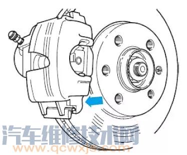 旋出制動鉗固定螺栓,取下制動鉗。確保制動器軟管不使勁,以免軟管受傷。