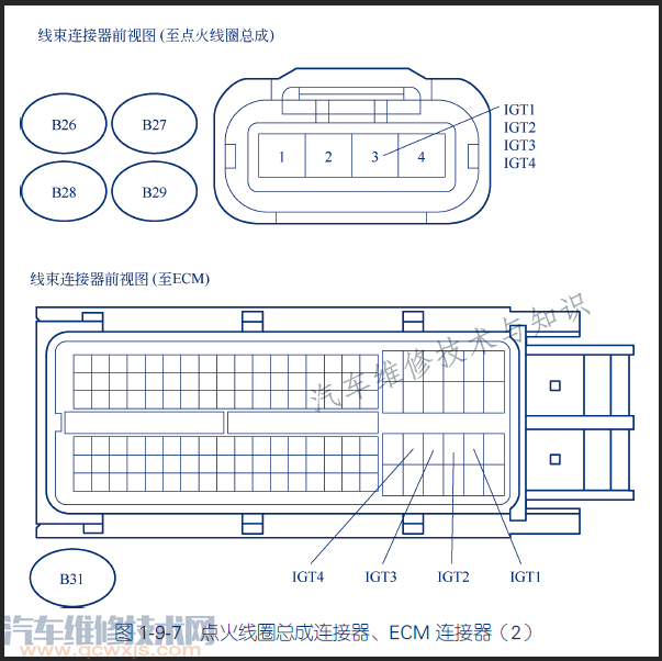 2. 檢查線束和連接器(點火線圈總成-ECM)