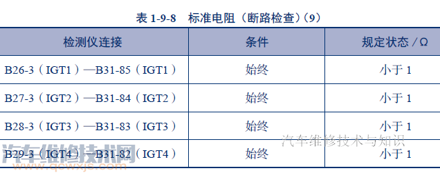 如果異常,則維修或更換線束或連接器(點火線圈總成-ECM)。如果正常,則更換ECM。