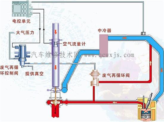 廢氣再循環(exhaustcas recirculation-egr)是將發動機排除的部分廢氣引入進氣管,與新鮮空氣混合后進入氣缸,利用廢氣中所含的CO2不參與燃燒卻能吸收熱量的特點,降低燃燒溫度,以減少NOx的排放。