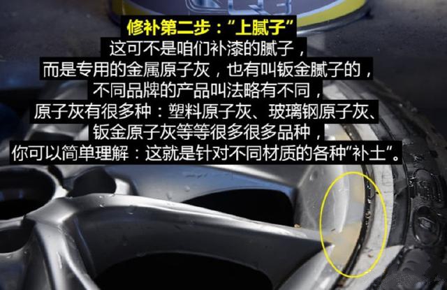 當輪轂打磨平整后,使用合金膩子將劃痕填平,這一步很好理解,與汽車鈑金噴漆用原子灰填平是一個道理。輪轂上使用的是合金原子灰,比汽車鈑金上使用的普通原子灰更堅硬細膩。