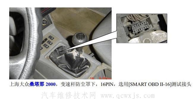 桑塔納99新秀:OBD診斷頭。大眾奧迪系統(tǒng)。OBD診斷頭位置排擋前方