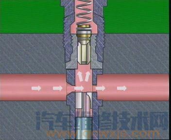 氣缸供油。對于六缸柴油機而言,分配泵的平面凸輪盤上有六段凸輪型線,相互間隔60°;滾輪座中裝有四個滾輪,但相互間隔分別為60°和120°。柱塞頂端有六條進油槽,而圓周上仍只有一條出油槽,相應的分配套筒上也有一個進油孔和六個出油孔。油泵傳動軸每轉過60°,柱塞就完成一次進油、壓油和分配的供油過程。這樣的供油過程重復六次,分配泵傳動軸旋轉一周。