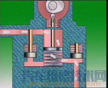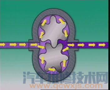 在油泵進口處體積增大,產生真空度,機油從進油口被吸入,然后被輪齒帶到油泵出口處,出口體積變小,壓力增大,將機油壓入出油道。主動齒輪由凸輪軸上的或曲軸直接或間接驅動。