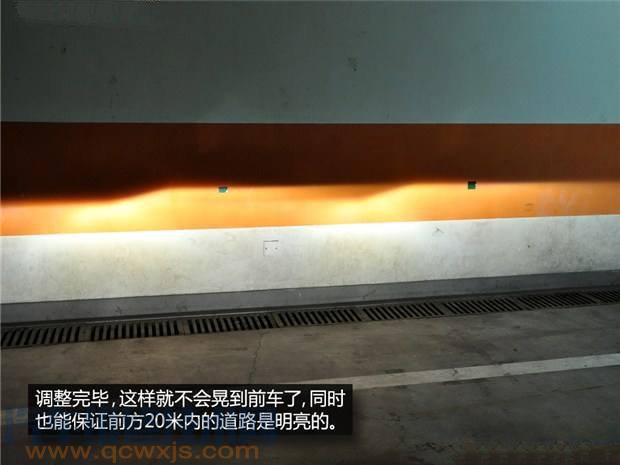 第一步,選擇昏暗的環境,比如地下停車場或者夜晚,將車頭正對一堵墻停放,車頭與墻體盡量對正,相距5~6m左右。