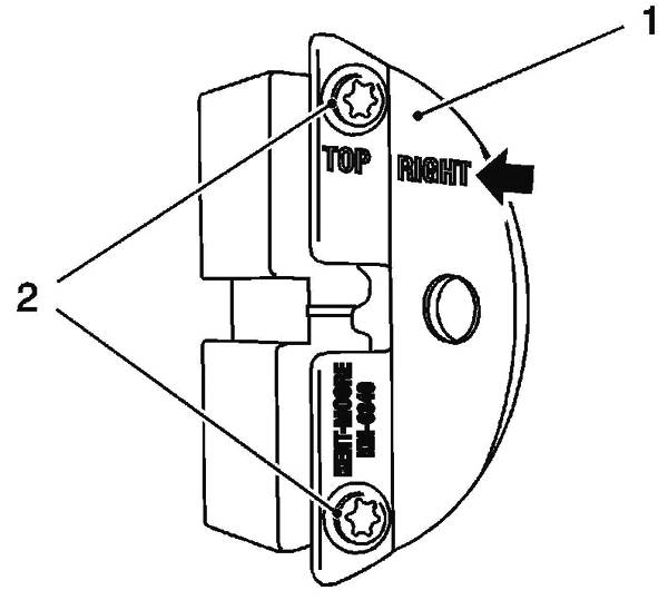 4.準備專用凸輪軸鎖止工具,編號EN-6340(下圖所示),如沒有專用工具按照步驟5注意中的方法進行標記。鎖止工具EN-6340右半部分上有字母“right右(下圖箭頭所示)”。拆卸鎖止工具兩個螺栓,將鎖止工具左、右部分分開。