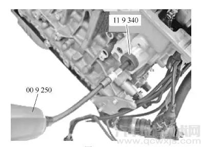 (16)將凸輪軸傳感器齒盤量規(guī)1安裝在氣缸蓋上▼