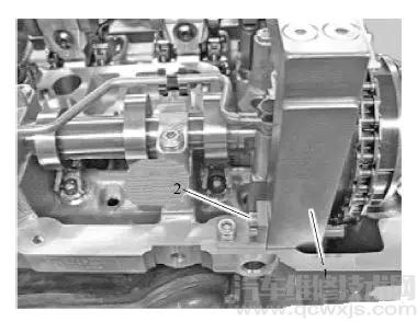 注意:VANOS調(diào)整裝置的中心螺栓2和3只能在安裝專用工具1后才能松開。