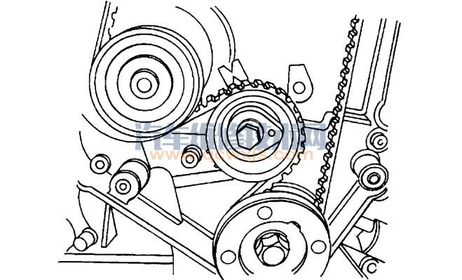 1.參見圖1-1-5,將曲軸齒輪上的正時標記對準后正時皮帶罩底部的缺口。