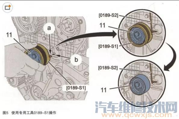 (12)張緊固定件期間,張緊輪(如圖7中11所示)不得轉動,如果不是這種情況,重新進行正時皮帶張緊操作。