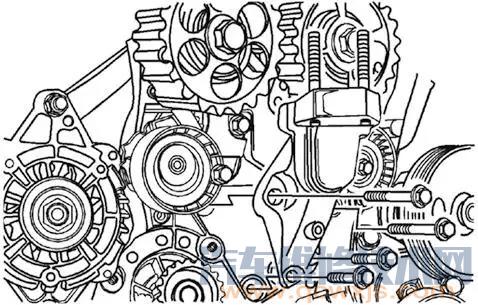 11. 拆下曲軸皮帶輪螺栓(之前已安裝用于轉動曲軸)。