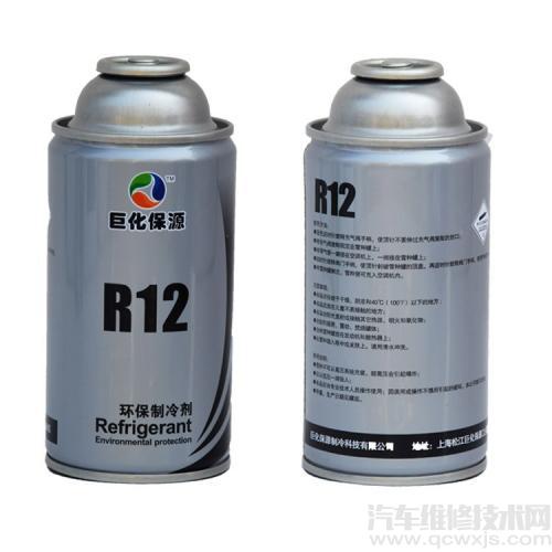 制冷劑R-12是汽車空調(diào)中常用的一種制冷劑,在制冷系統(tǒng)中用做制冷排熱的流體,主要成分是氟、氯、碳,化學(xué)名稱為二氯二氟甲烷(CC12F2),化學(xué)結(jié)構(gòu)式。