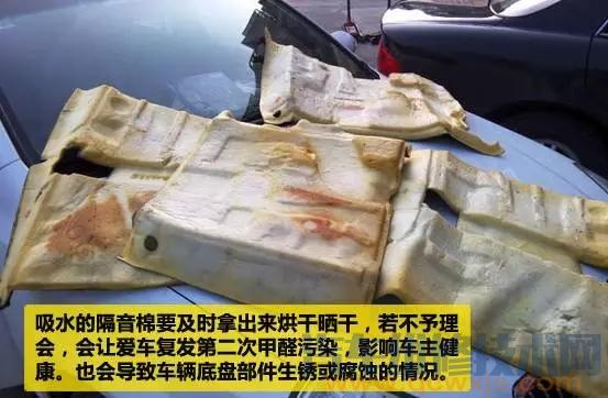 水位越高,隔音棉吸水越厲害。已吸水的隔音棉要及時拿出來烘干曬干,若不予理會,會讓愛車復發第二次甲醛污染,影響車主健康。另外也會導致車輛底盤部件生銹或腐蝕的情況。