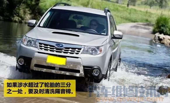 如果涉水超過了輪胎的三分之一處,要及時清洗隔音棉。是不是淹水超過至輪胎的三分之一,是涉水后是否要去檢修的界限。因為超過這個界限,水會通過車底板的透水孔往上滲透,從而弄濕了底盤內部的隔音棉。