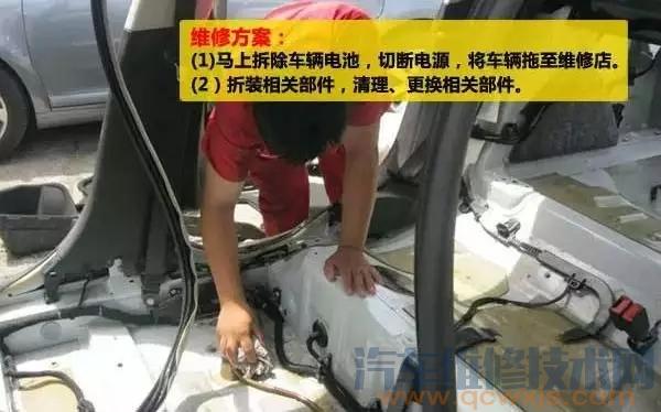 (1)馬上拆除車輛電池,切斷電源,將車輛拖至維修店。