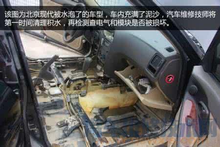 故障車情況:水位已淹至車門防撞條位置,車內進水,地毯被泡濕。購買商業保險。維修方案:由于車輛被淹嚴重,而且購買了商業險,因此要先理陪再維修。