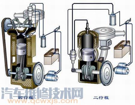 (3)按照完成一個工作循環所需的行程數,可分為四行程內燃機和二行程內燃機。把曲軸轉兩圈(720°),活塞在汽缸內上下往復運動4個行程,完成一個工作循環的內燃機稱為四行程內燃機;而把曲軸轉一圈(360°),活塞在汽缸內上下往復運動兩個行程,完成一個工作循環的內燃機稱為二行程內燃機。汽車發動機廣泛使用四行程內燃機。