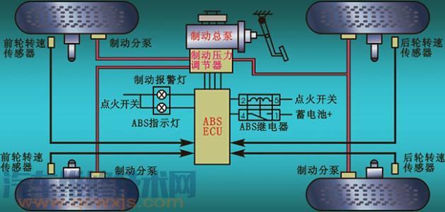 3 如果無法讀取故障代碼,則可按ABS故障警告燈點亮的規律判斷故障的大致范圍:若打開點火開關后或發動機啟動后ABS故障警告燈一直不熄滅,則可能是ABS的ECU、電動回液泵、二位二通電磁閥損壞或其電源線路、搭鐵線路有故障;若打開點火開關后或發動機啟動后ABS故障警告燈能正常熄滅,但汽車加速至40km/h時踩制動踏板后ABS故障警告燈又亮起,則通常是車輪轉速傳感器損壞或其線路有故障;