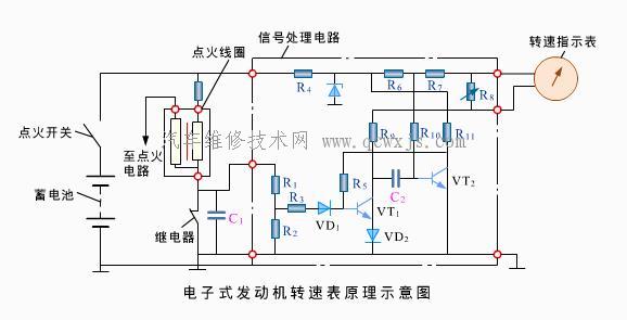 機械式轉速表的結構和工作原理與上述磁感應式車速表基本相同。電子式轉速表由于結構簡單、指示準確、安裝方便等優點在現代車輛中應用廣泛。